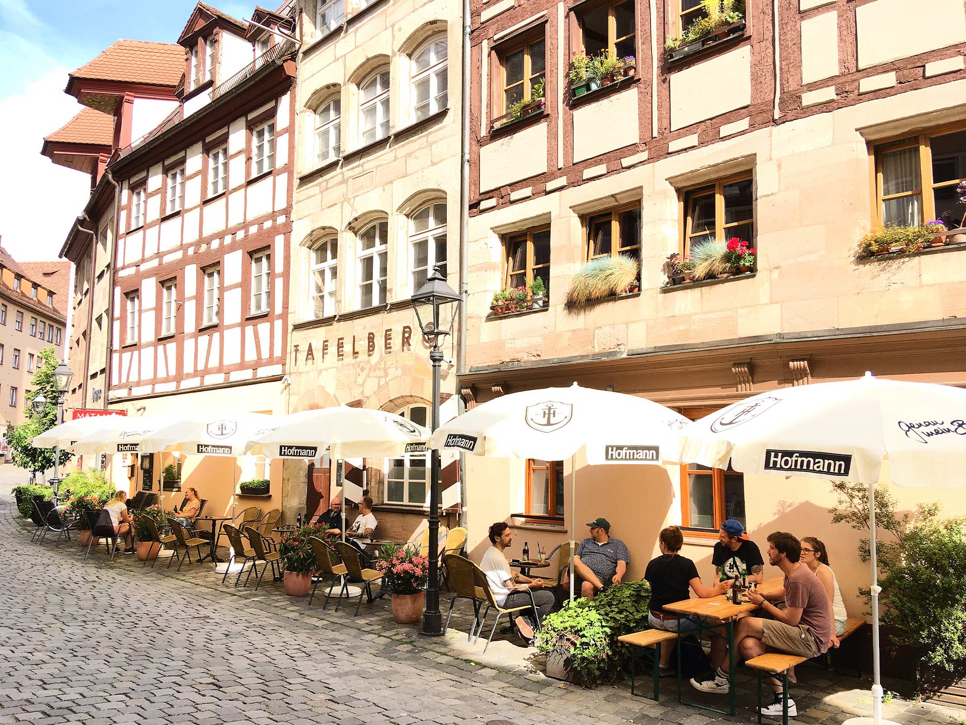 Unsere Terrasse in der schönsten Straße Nürnbergs ist täglich von 15.00 Uhr bis maximal 24.00 Uhr geöffnet. Auch bei schlechteren Bedingungen haben wir dank unserer wetterfesten Schirme immer ein trockenes Plätzchen. Trotz nahezu täglichem Regen, haben wir so bisher fast keinen Tag versäumt!